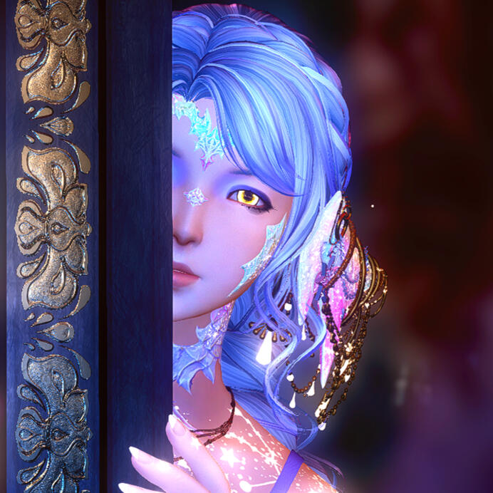 Silver hair with hints of lilac ✦ pale gold eyes ✦ opalescent scales ✦ celestial tattoos