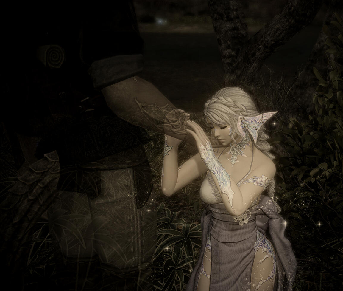[drawn sigh] "This… man.To think I would bode well better off keeping those I encounter at arm’s length… Yet... Rasa... he has made it all the more impossible, for the better I think. I… I had no intentions for courtship, dating, however you wish to call it truthfully… I just didn't think it ever a possibility after losing both my son and husband. [chuckles faintly] I am not one to typically speak so openly the troubles that cloud my mind with just anyone. Vahn, and Cota the exception given our ties and well… they know before I do if something is amiss. So… too can he, apparently. He’s somehow managed to gracefully pick apart the bindings that which hold up the walls I’ve long kept guarded around my heart, cleverly so. Leaving me to feel rather vulnerable though with little room to feel uncertainty. [chuckles] No, no I’ve no ill regard of course, quite the opposite as it seems I’ve unknowingly found myself to be more than just... smitten with him…"